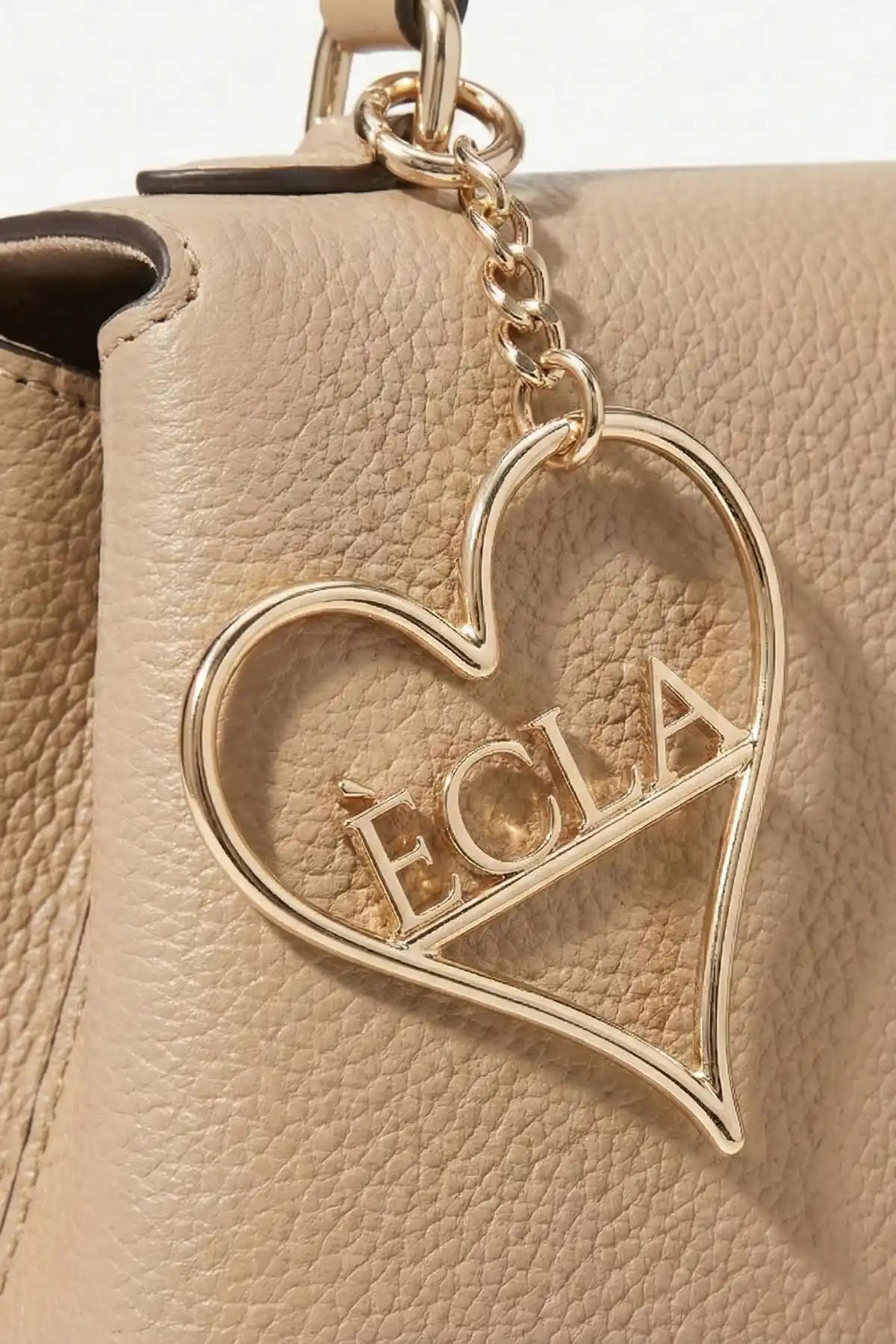 Dokunduğunuzda hissettiğiniz pürüzsüz yüzey ve altın tonunun sıcak ışıltısı, en sade tasarımları bile birer sanat eserine dönüştürür. Çantanızın sapında süzülen bu kalp figürü, zamansız tasarımıyla moda akımlarının ötesinde bir şıklık sunar. Minimalist çizgilerle işlenmiş ÈCLA logosu, prestijin en zarif halini temsil ederken, çantanızın deri dokusuyla mükemmel bir kontrast oluşturur.