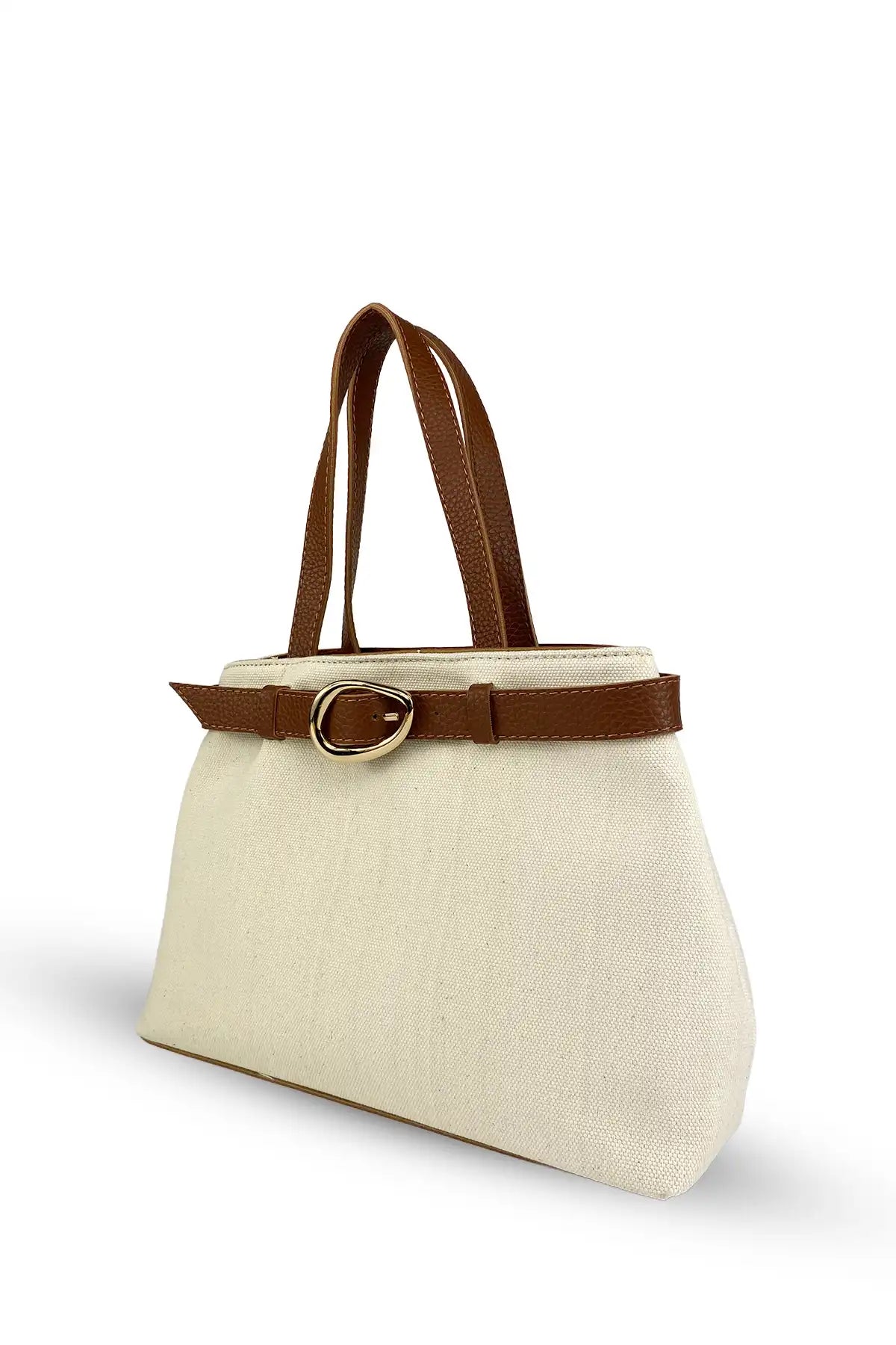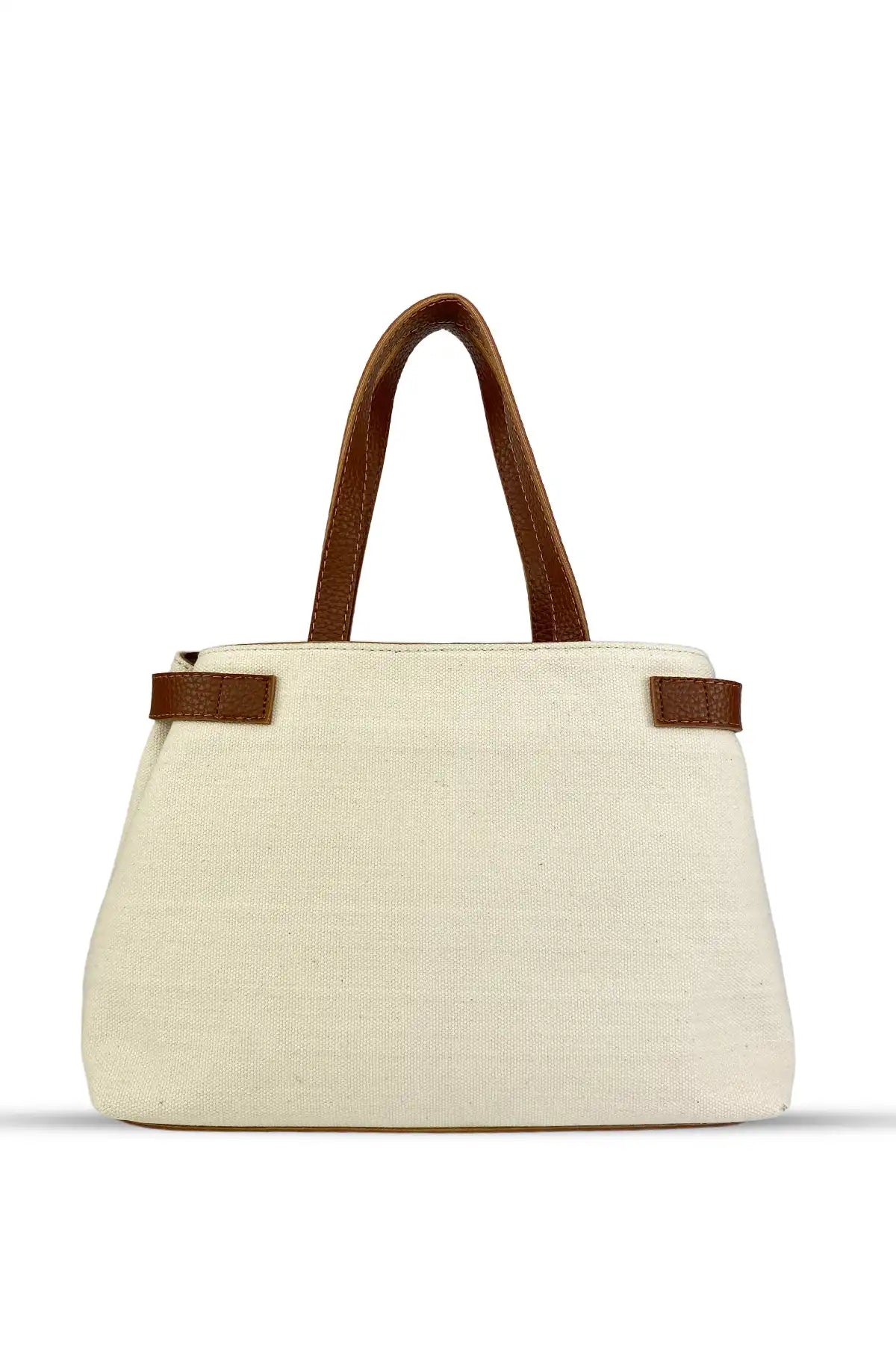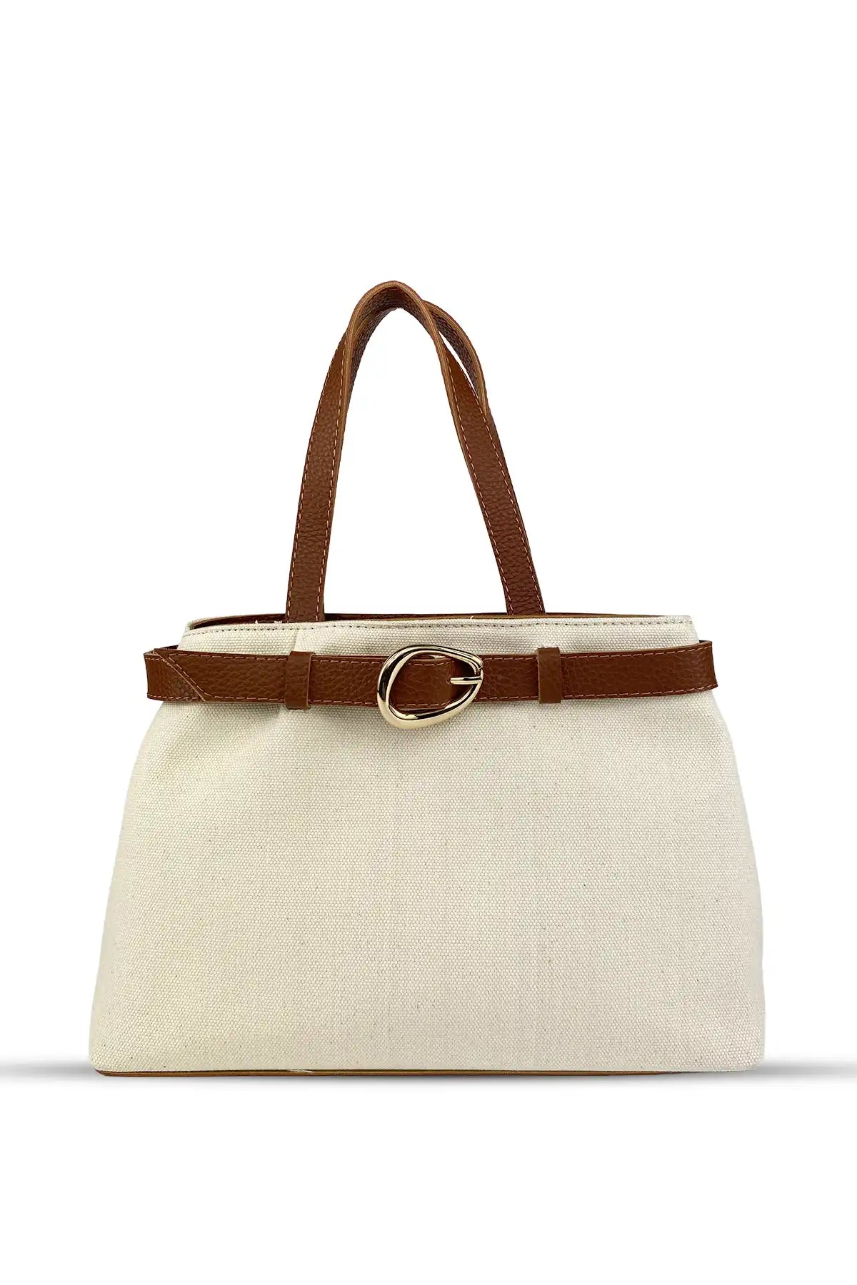 Lusso - Keten Kumaş - Deri Saplı Premium Çanta