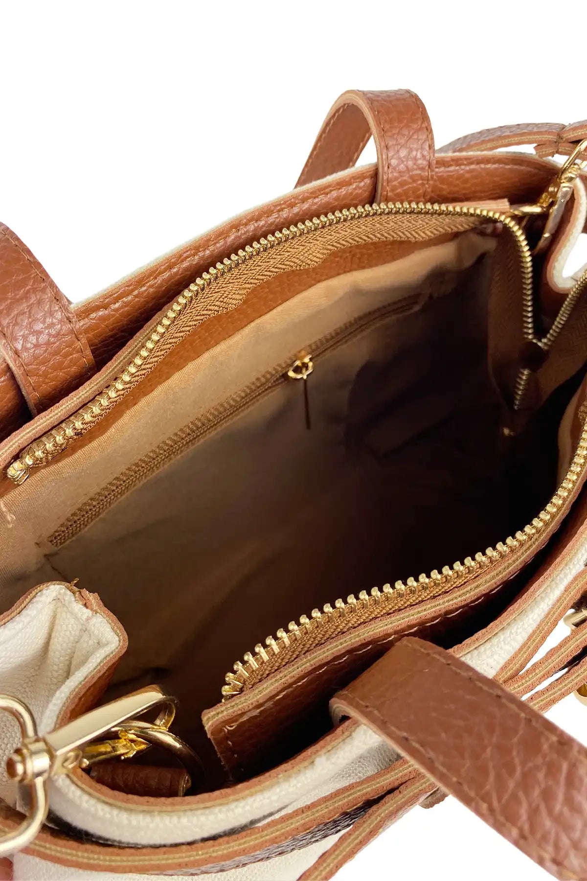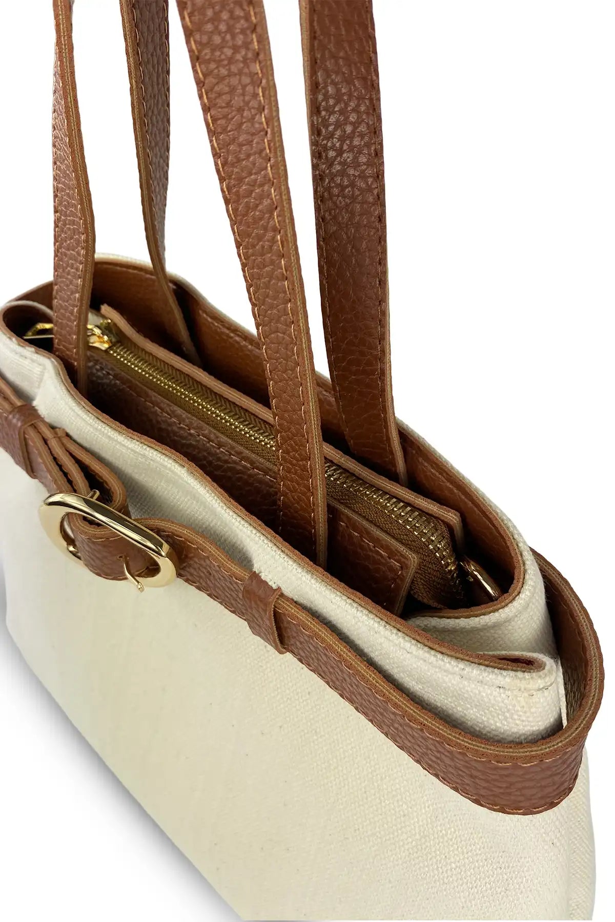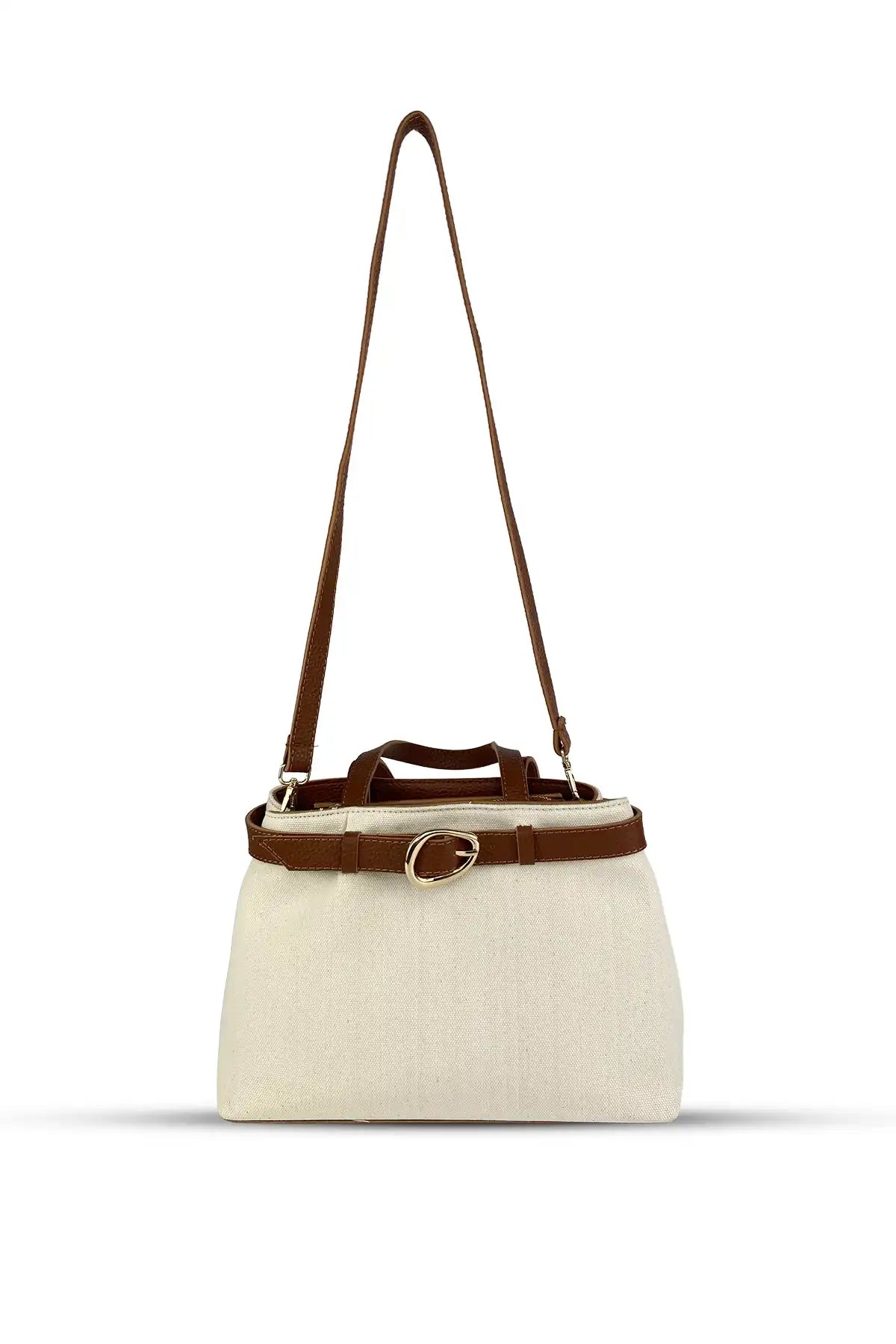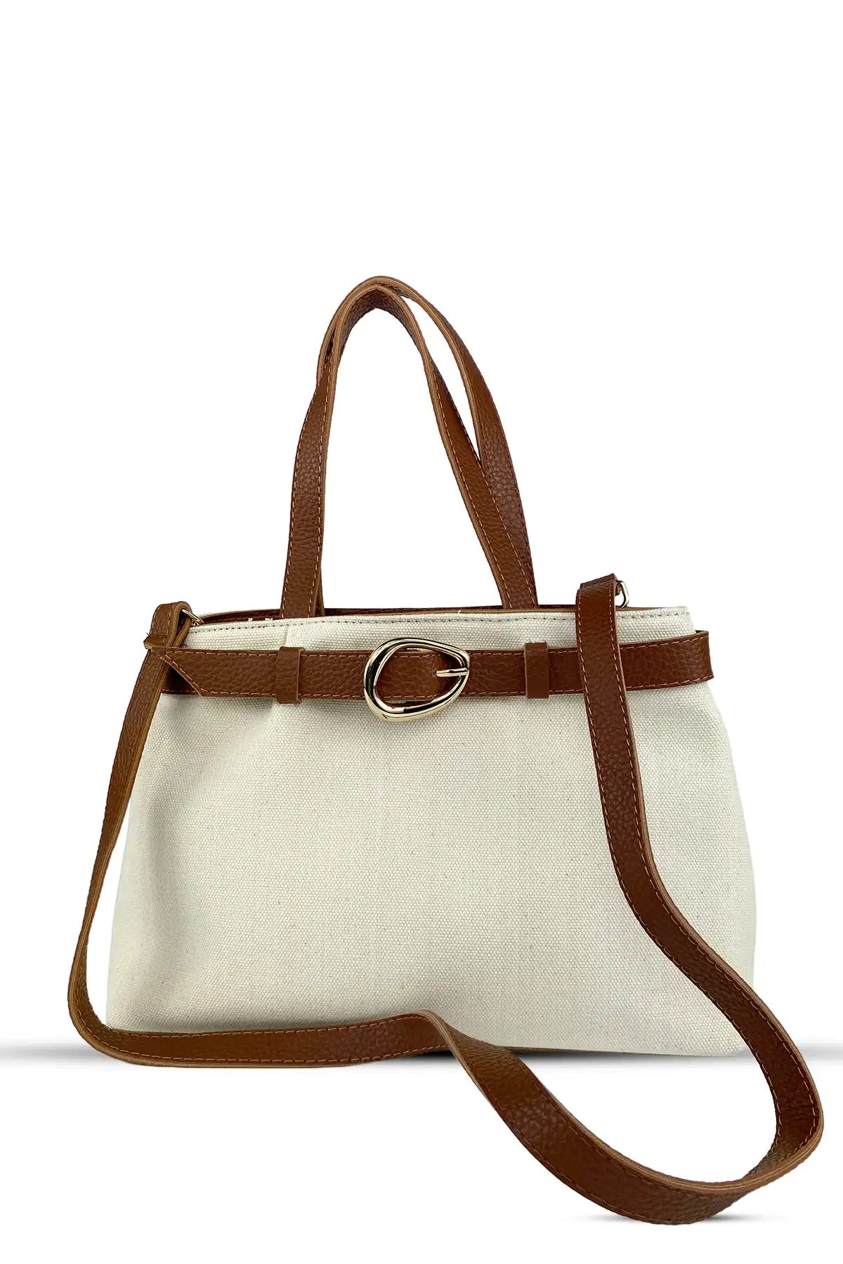 Lusso - Keten Kumaş - Deri Saplı Premium Çanta
