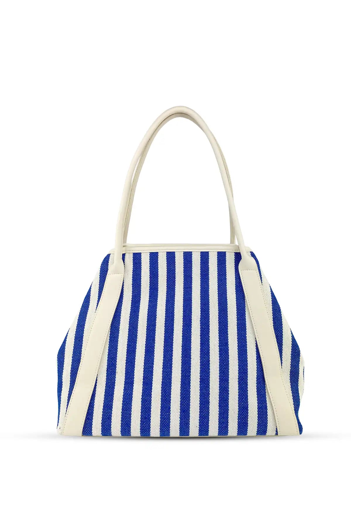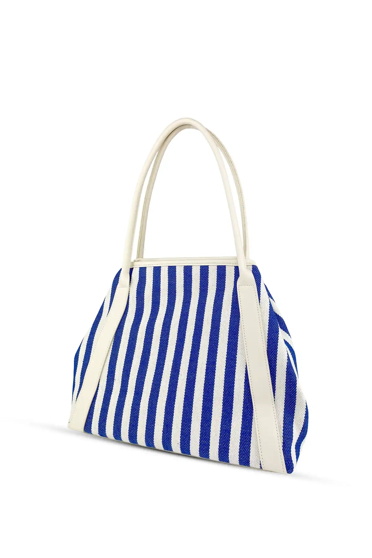 Riga Mavi-Beyaz Çizgili Büyük Omuz Çantası