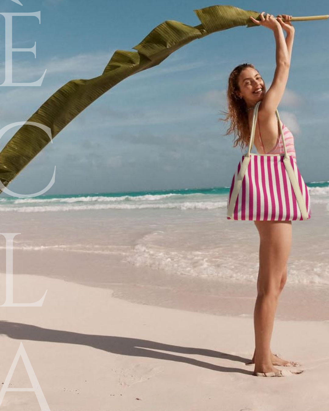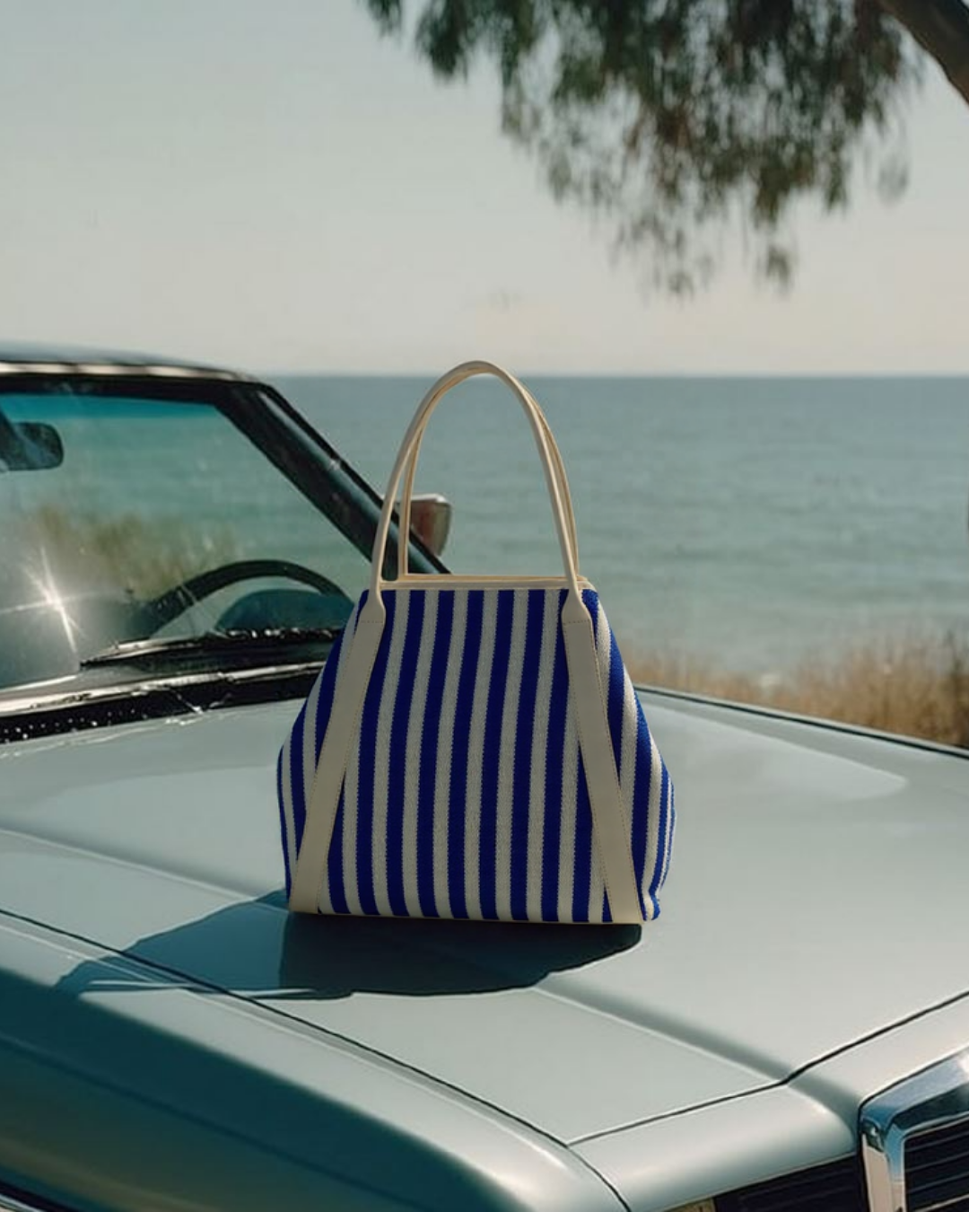 RIGA, sarı ve beyaz çizgili deseniyle sahil şıklığını şehir hayatına taşıyor. Geniş iç hacmi sayesinde plajdan şehir gezintilerine kadar her an yanınızda olmaya hazır. Hasır dokulu yüzeyi yaz mevsiminin enerjisini yansıtırken, kontrast yaratan ekru suni deri saplar zarif bir görünüm sunar. Dayanıklı yapısı ve ferah iç tasarımıyla hem stil hem fonksiyon arayan kadınlar için ideal bir seçimdir.