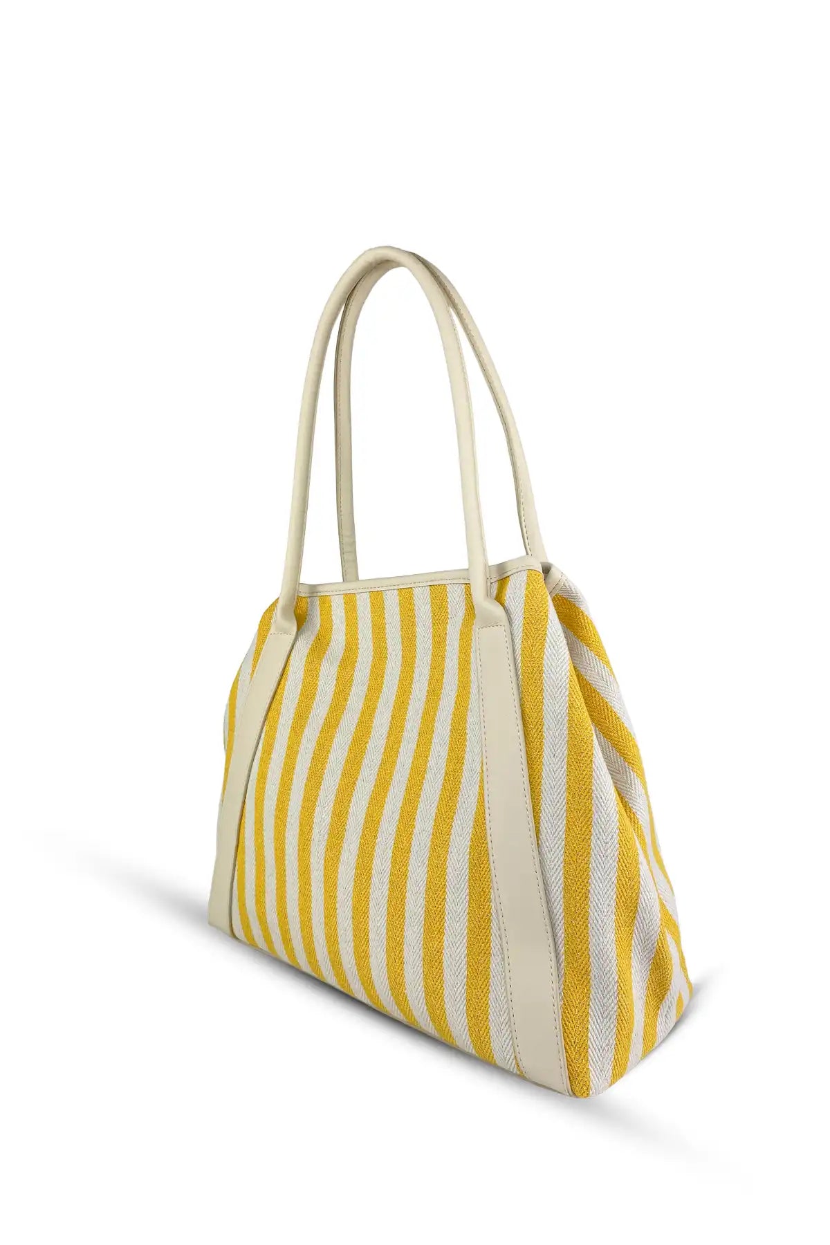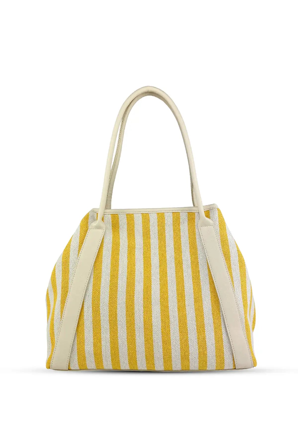 Riga Sarı-Beyaz Çizgili Büyük Omuz Çantası