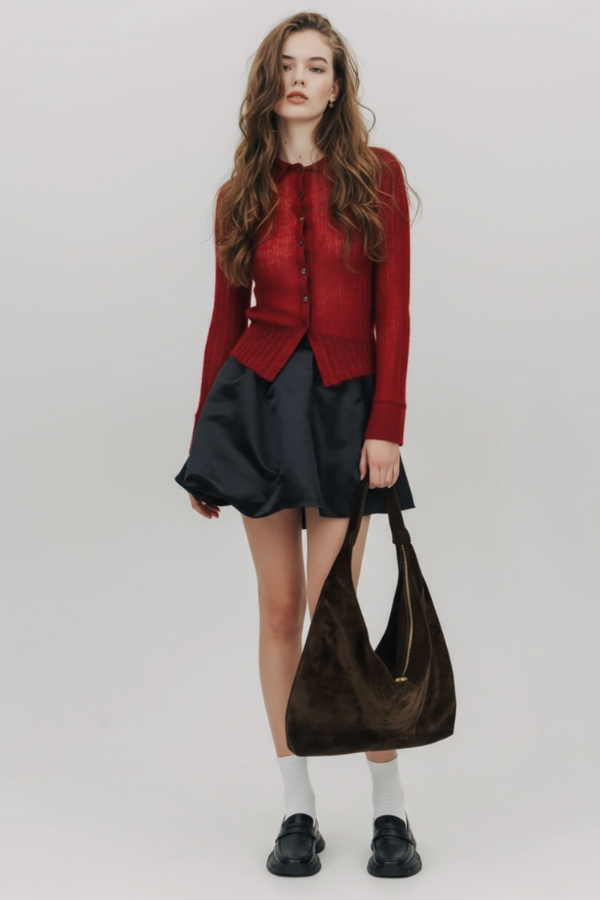 Terra Püsküllü Yavrulu Süet Çanta – Acı Kahve