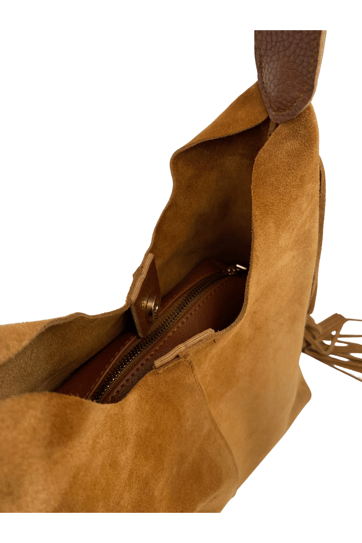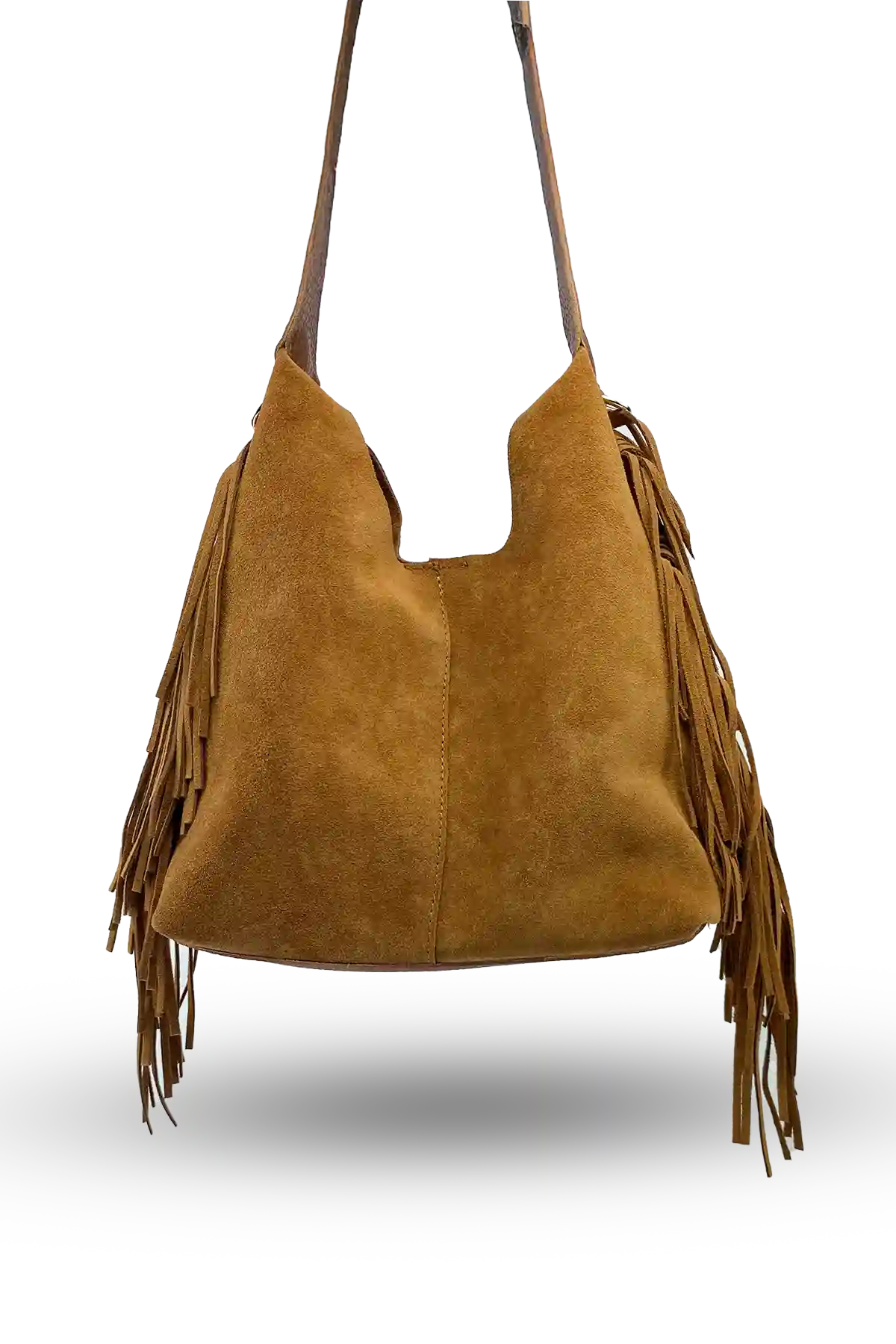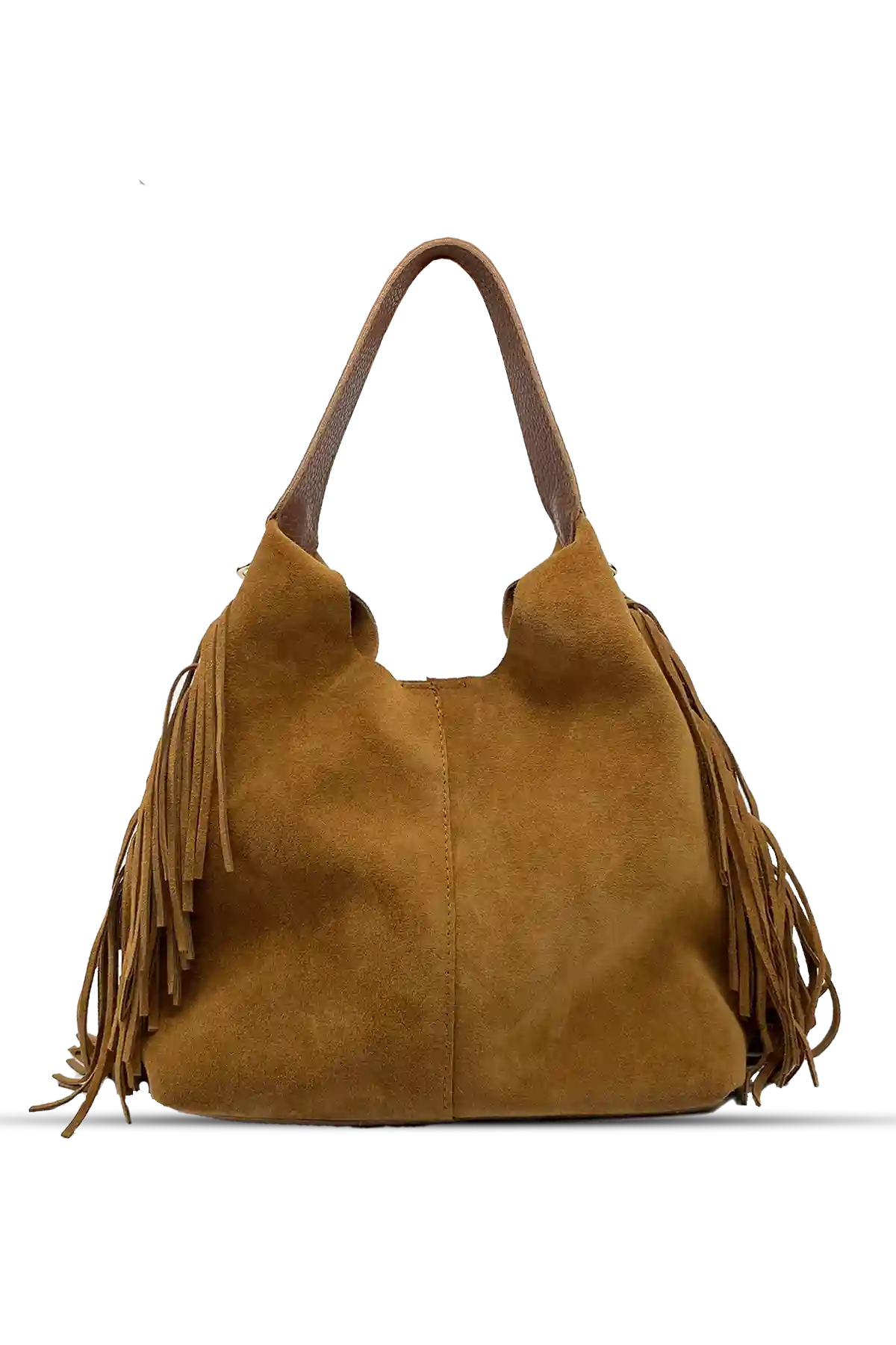 Terra Püsküllü Yavrulu Süet Çanta – Taba