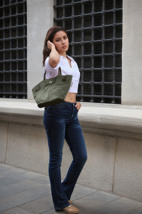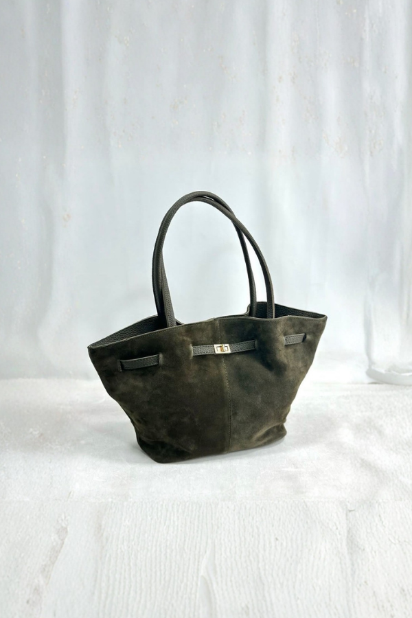 Vivienne | Hakiki Süet Deri Çanta | Zeytin Yeşili